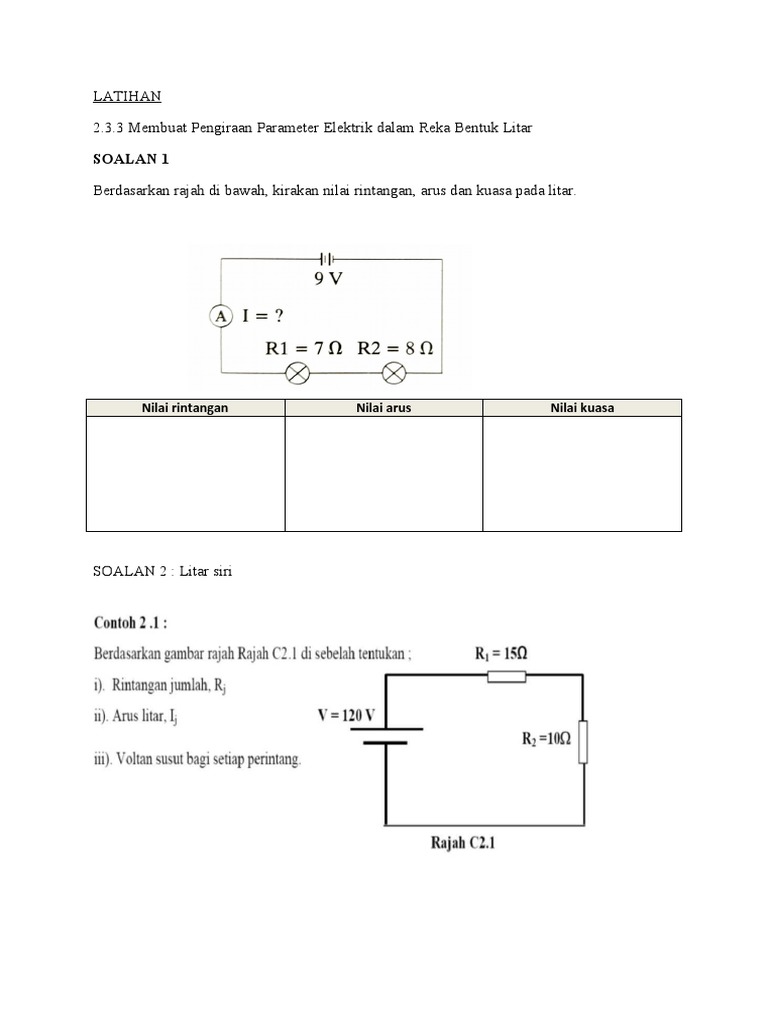 Latihan Pengiraan Parameter Reka Bentuk Elektrik Dan Jawapan