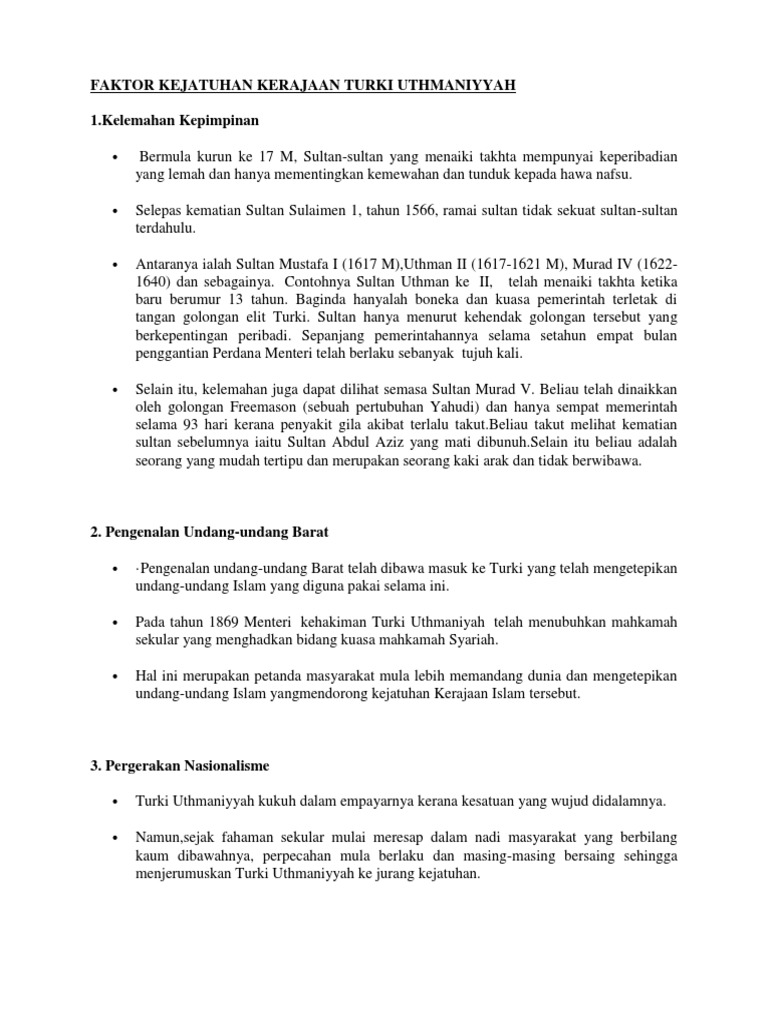 Faktor Kejatuhan Kerajaan Turki Uthmaniyyah Docx