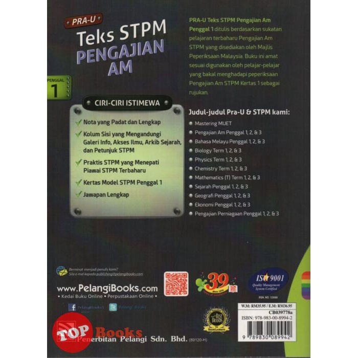 Topbooks Pelangi Pra U Teks Stpm Pengajian Am Penggal 1 Lazada