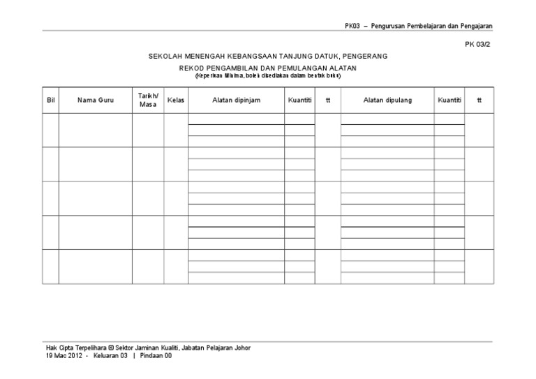 Pk03 2 Rekod Pengambilan Dan Pemulangan Alatan