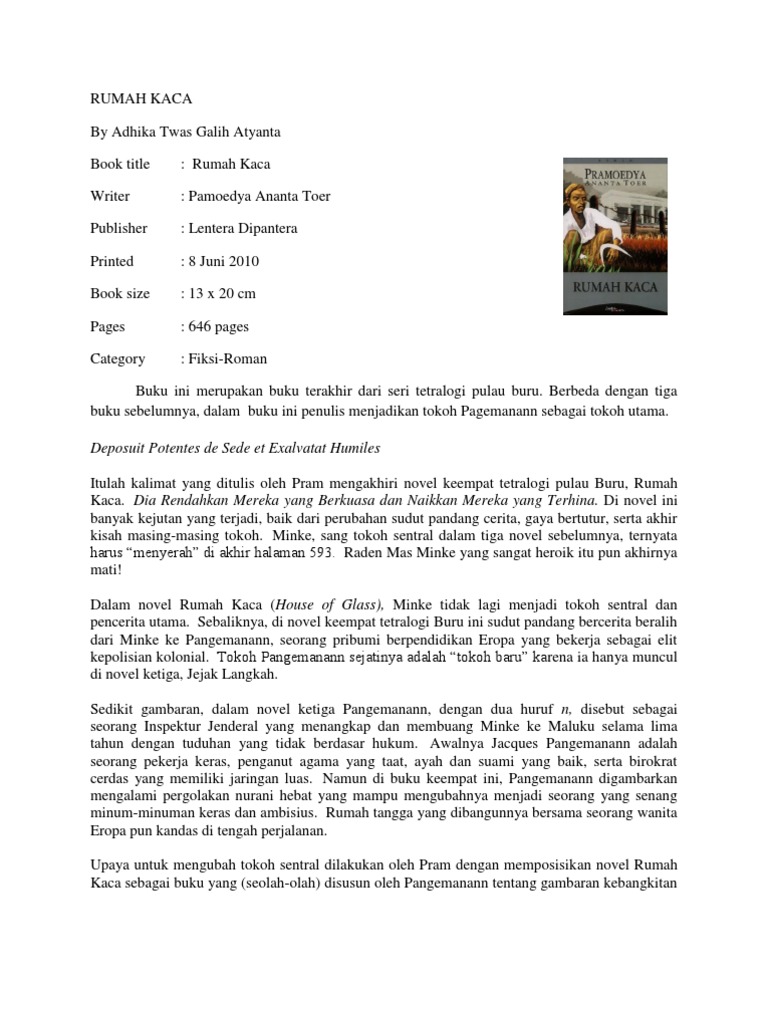 Pdf Novel Sejarah Rumah Kaca Contoh Makalah