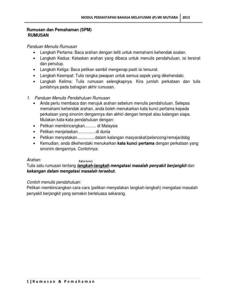 Laman Bahasa Melayu Spm Soalan Dan Cadangan Jawapan Soalan 1 Rumusan Dan 2 A Pemahaman Umum Peperiksaan Percubaan Negeri Kelantan