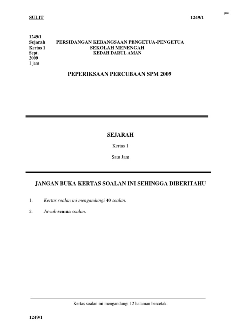 Soalan Percubaan Sejarah Spm 2009 Kedah