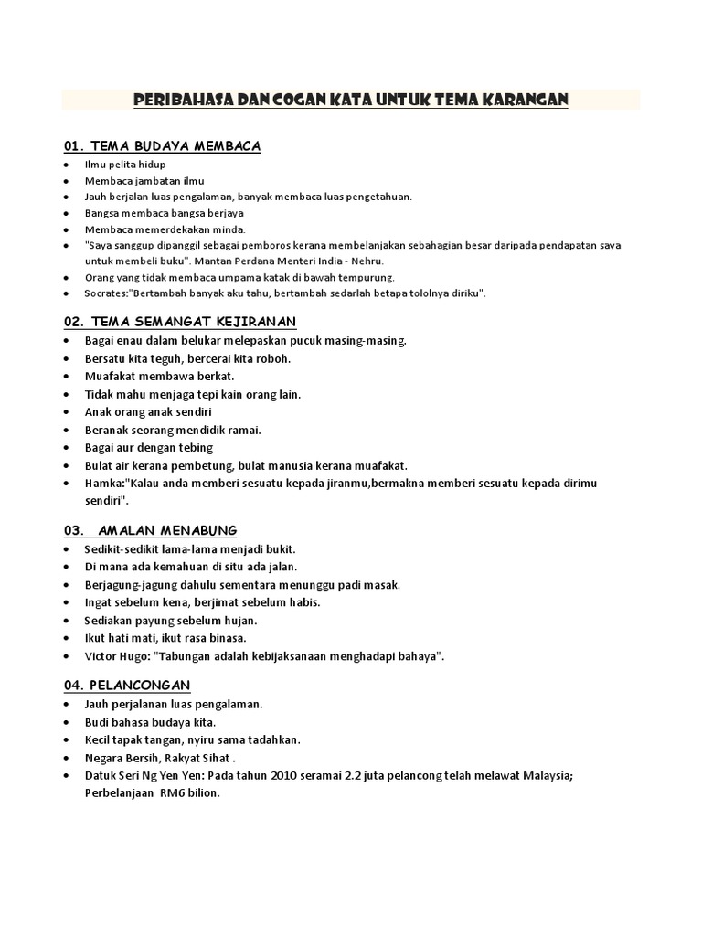Peribahasa Dan Cogan Kata Untuk Tema Karangan
