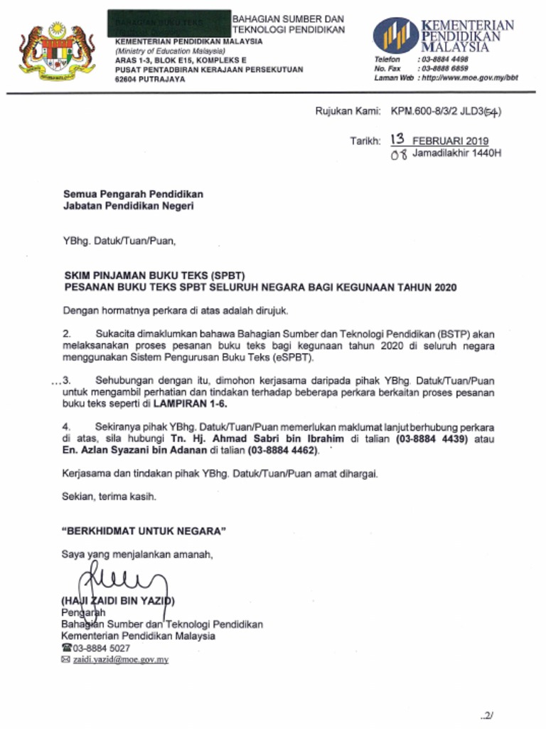9 Surat Pesanan Buku Teks Spbt Seluruh Negara Bagi Kegunaan Tahun 2020