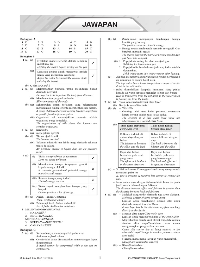 Jawapan Kertas Model Pt3 Modul Aktiviti Pintar Bestari Sains Tingkatan 3 Berdasarkan Format Pt3 Mulai 2019 Pdf
