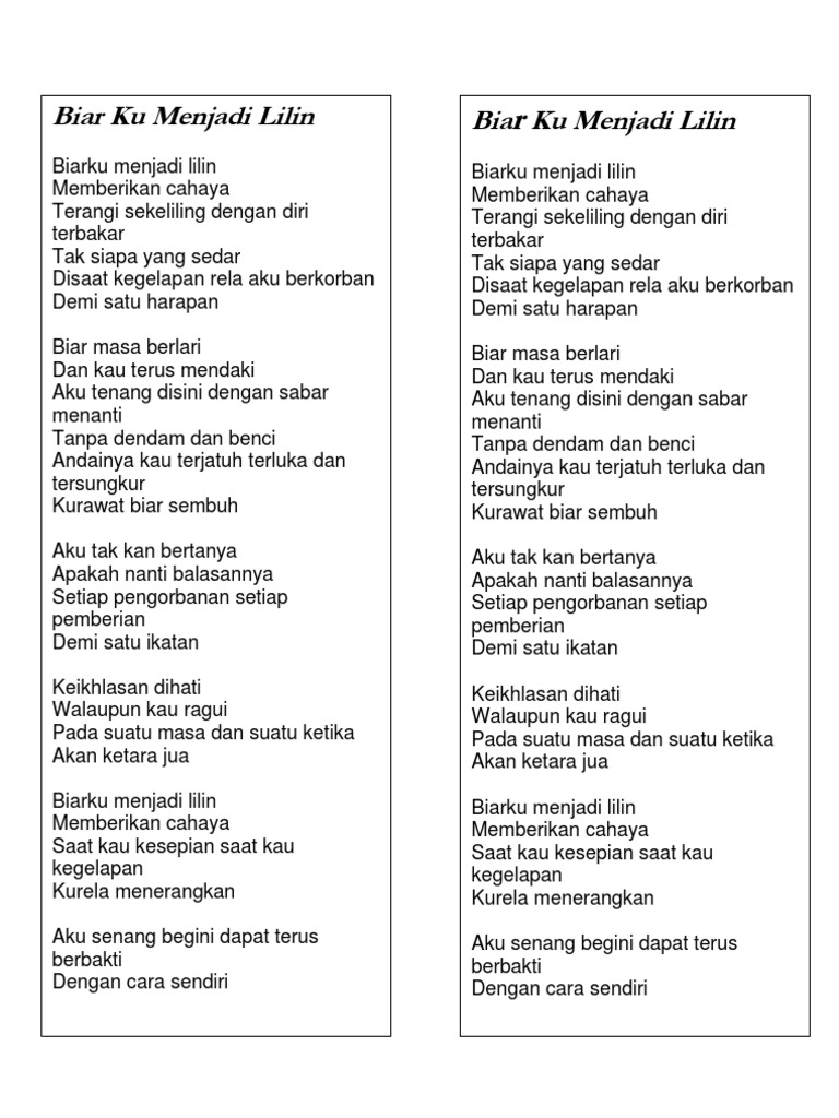 Lirik Biarku Menjadi Lilin