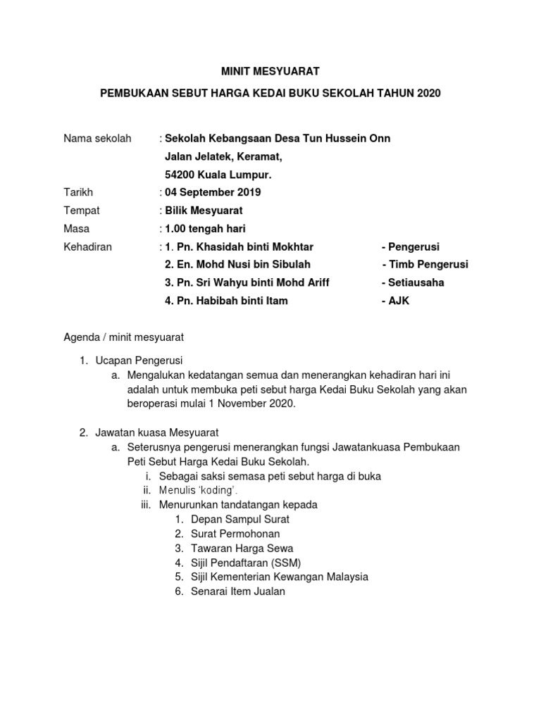 Doc Borang Tender Kantin Dan Kedai Buku Skbbs2 Bba7241 Academia Edu