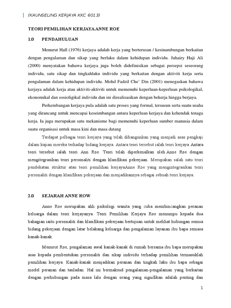 Pdf Teori Keperluan Kerjaya Anne Roe Suziyanah Mohd Salleh And Muhd Hazim Dahuli Academia Edu