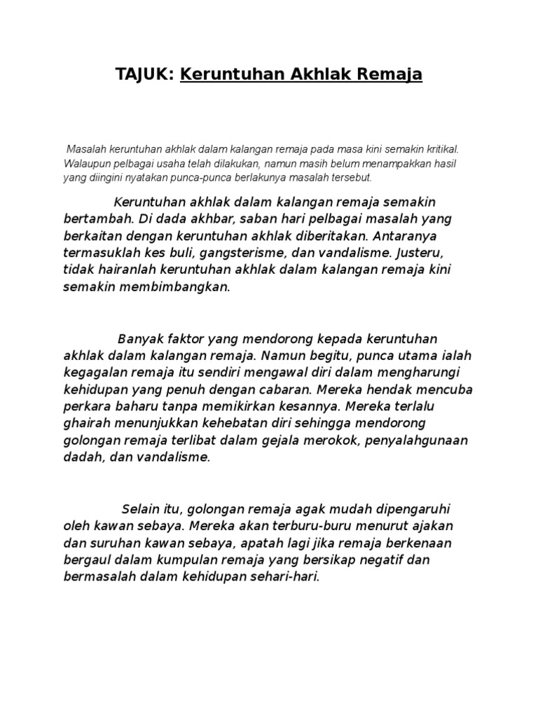 Doc Isu Moral Dan Keruntuhan Akhlak Remaja Mohd Noor Fazlan Azizan Academia Edu