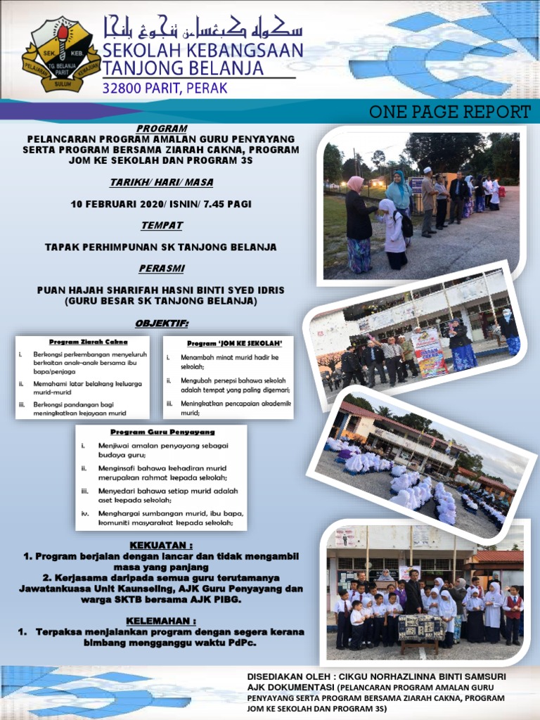 One Page Report Pelancaran Program Amalan Guru Penyayang Serta Program Bersama Ziarah Cakna Program Jom Ke Sekolah Dan Program 3s 2020