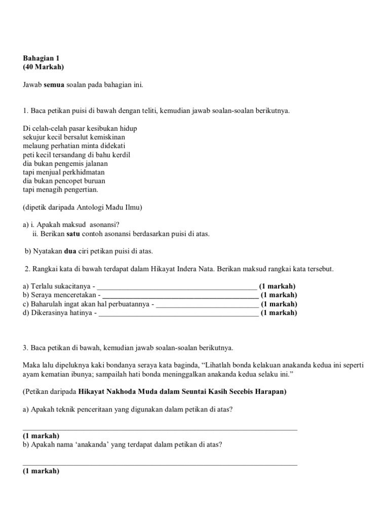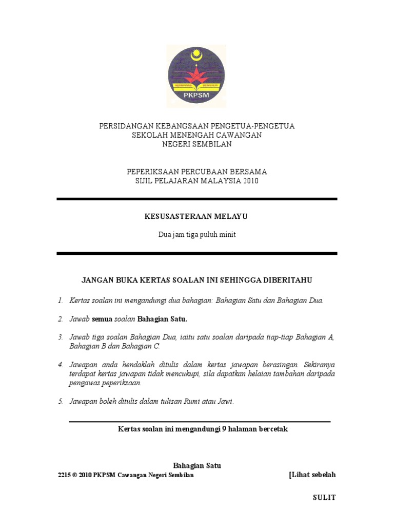 Soalan Percubaan Kesusasteraan Melayu Spm 2010