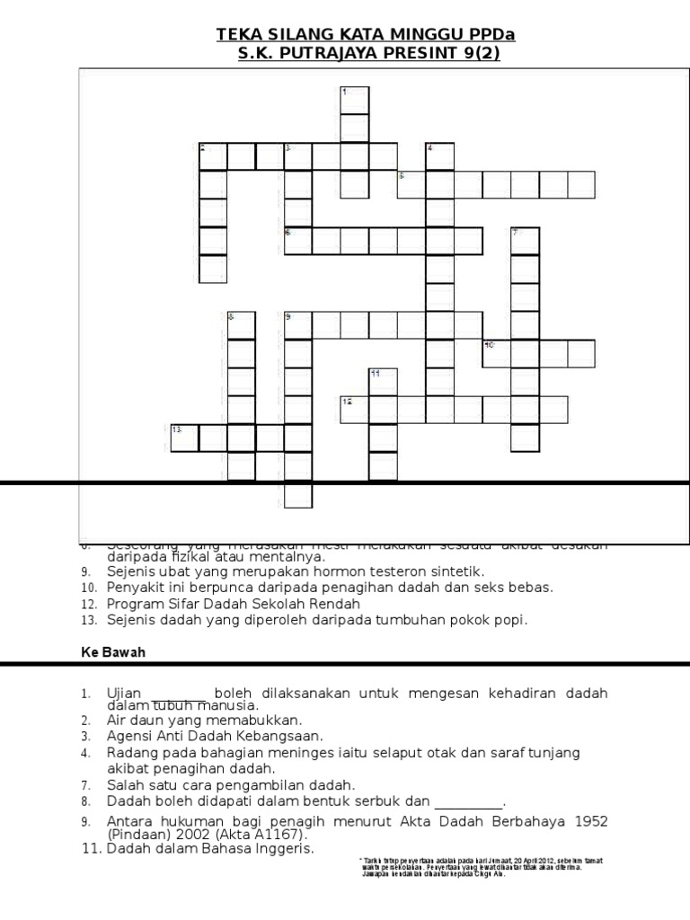 Contoh Teka Silang Kata Minggu Anti Dadah Yang Sangat Berguna Untuk Ibubapa Download Skoloh