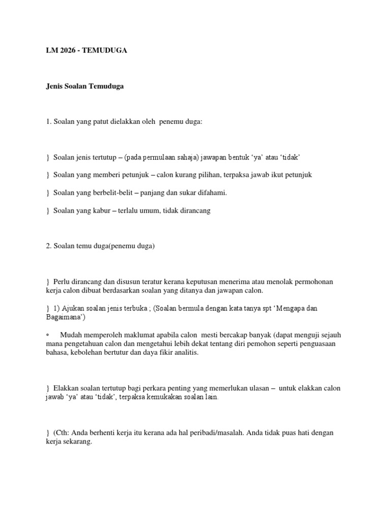 Contoh Soalan Temuduga Spa Dan Temuduga Kerja Kerajaan Docx Document