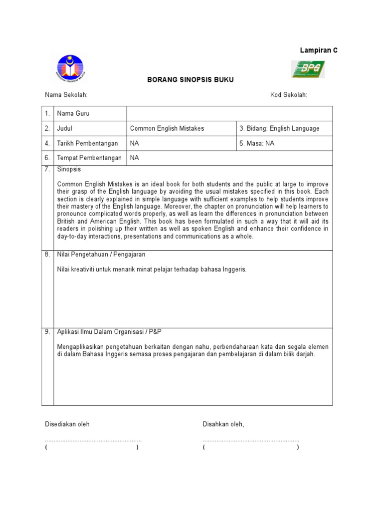 Borang Sinopsis Buku Untuk Guru Pdf Document