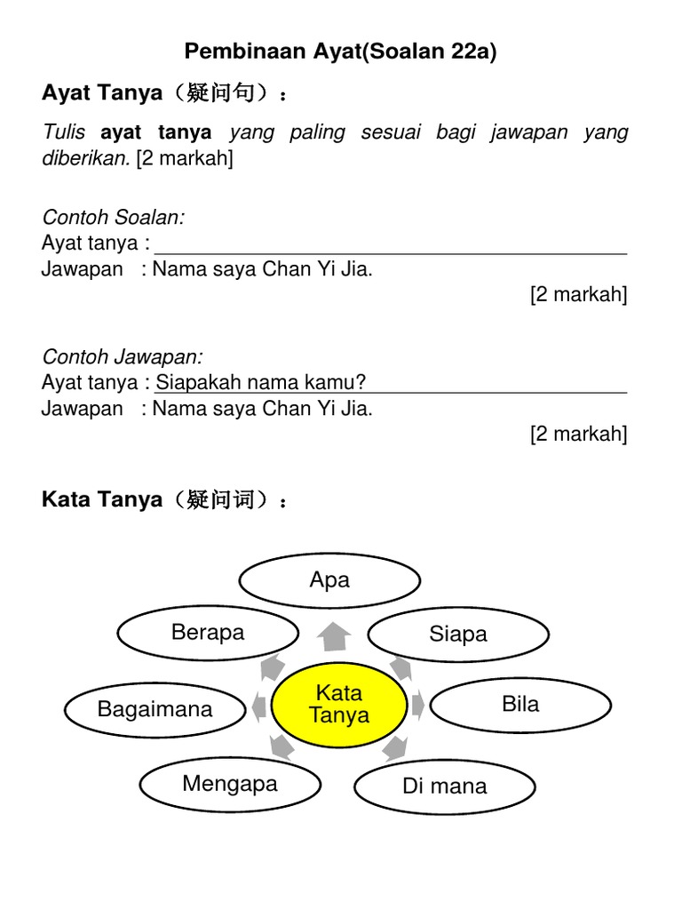 Contoh Soalan Ayat Tanya Bagi Jawapan