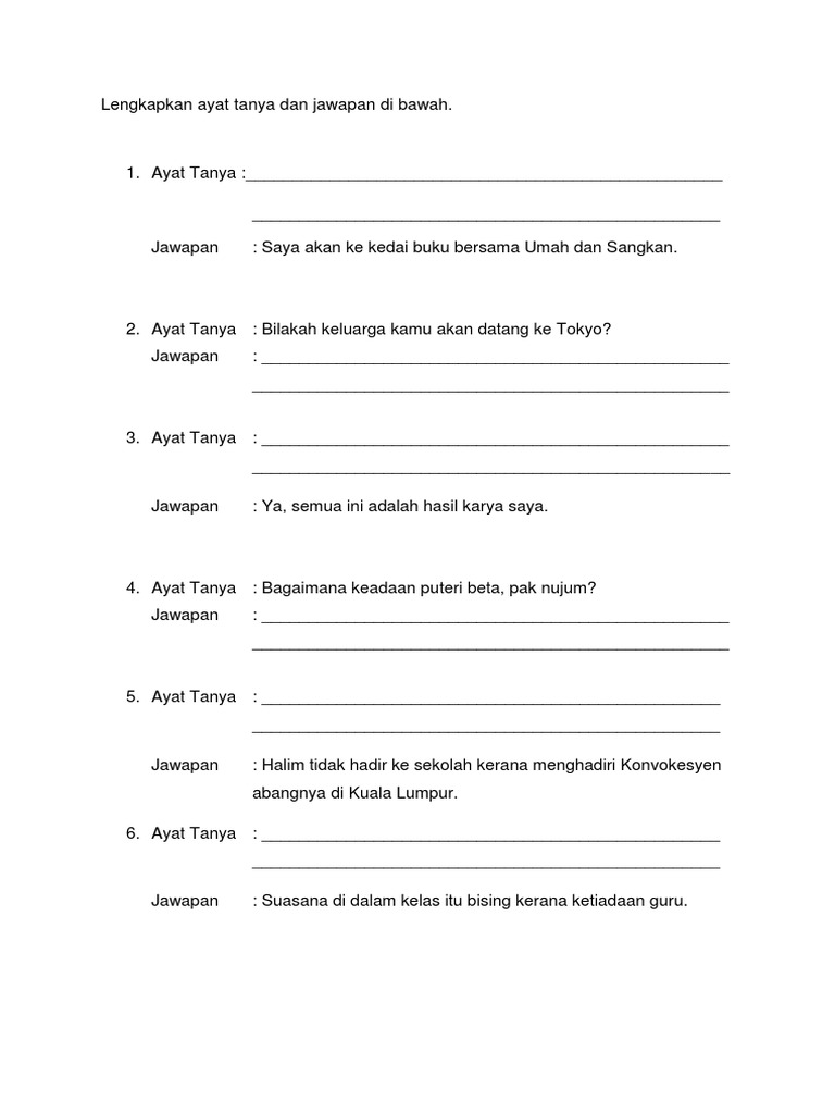 Latihan Ayat Tanya Dan Jawapan