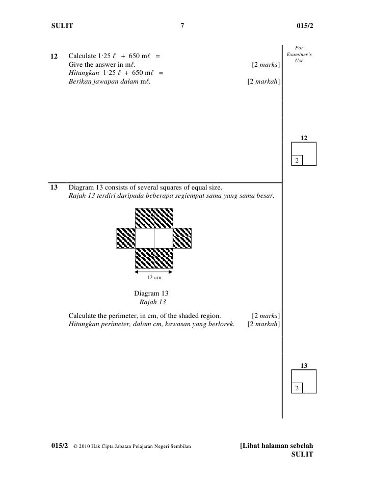 Jawapan Percubaan Upsr 2019 Matematik Negeri Sembilan