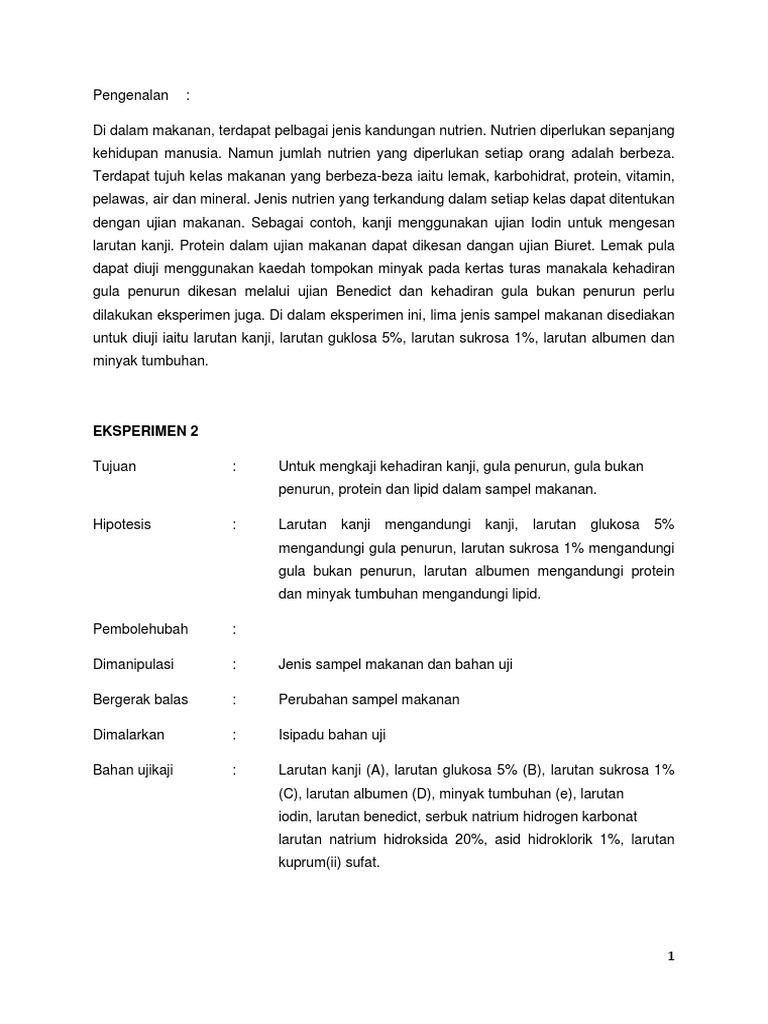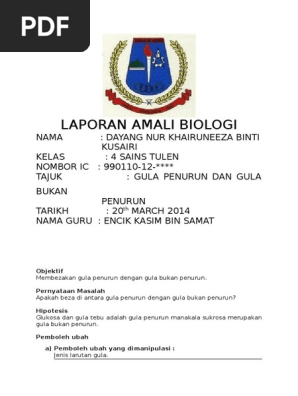 Laporan Amali Biologi 4 1 Gula Penurun Dan Gula Bukan Penurun