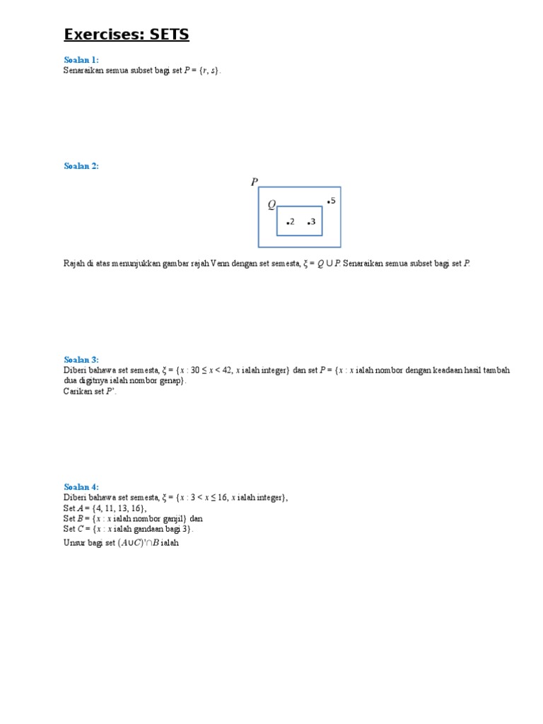 Latihan Matematik Tingkatan 4 Tajuk Set Dan Jawapan