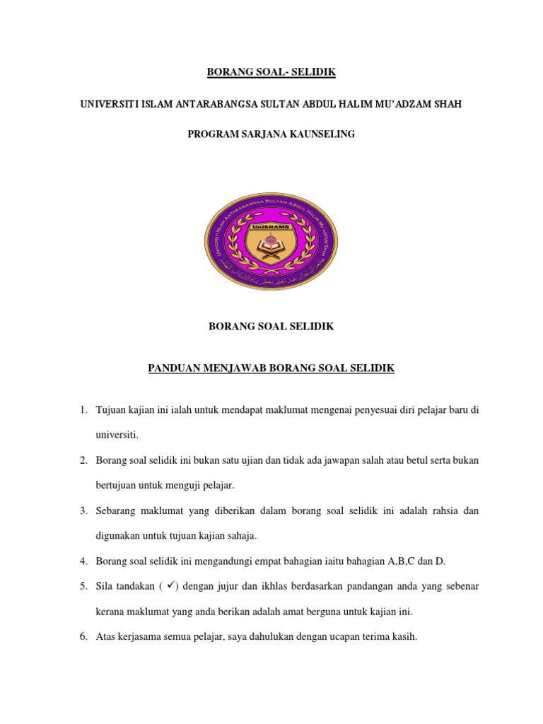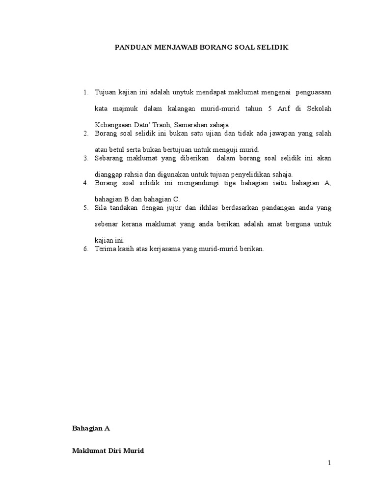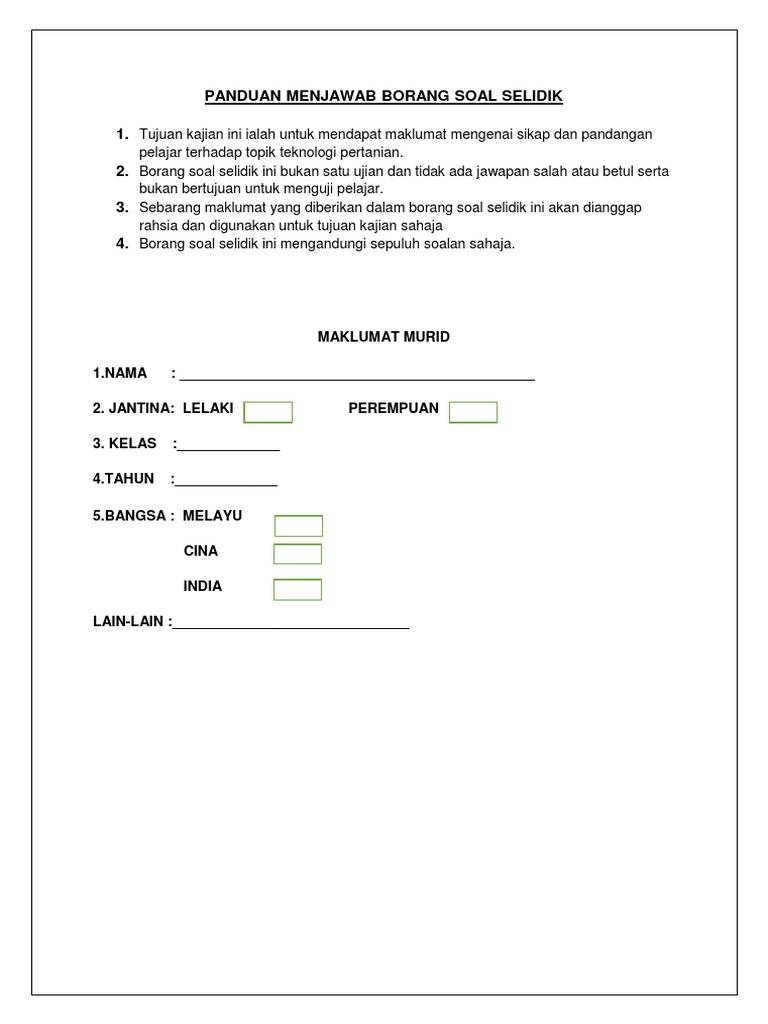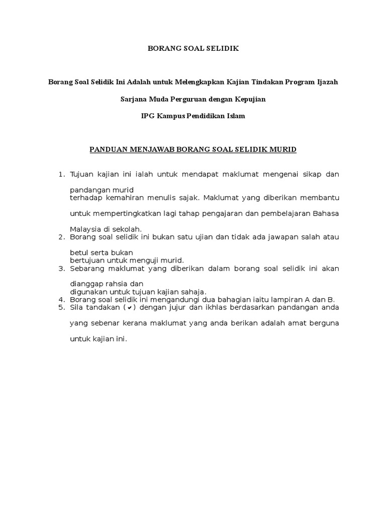 Panduan Menjawab Borang Soal Selidik