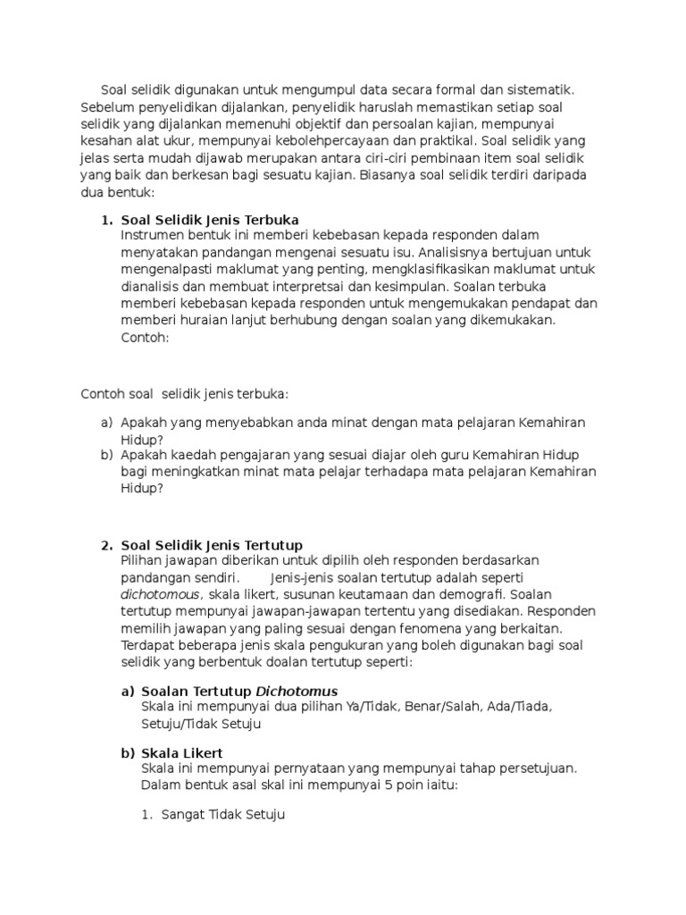 Soal Selidik Merupakan Satu Set Soalan Atau Item Dalam Bentuk Tulisan