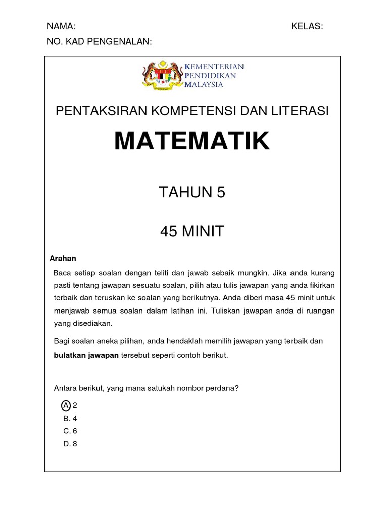 Kertas Ujian Matematik Kertas 1 Tahun 5 Kssr