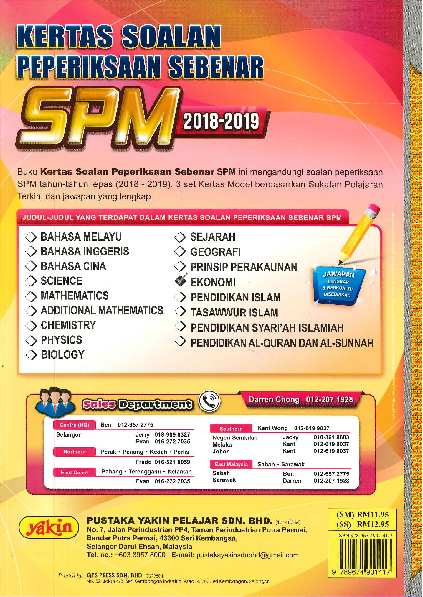 Kertas Soalan Peperiksaan Sebenar Spm Ekonomi 2018 Buddy Bookstore