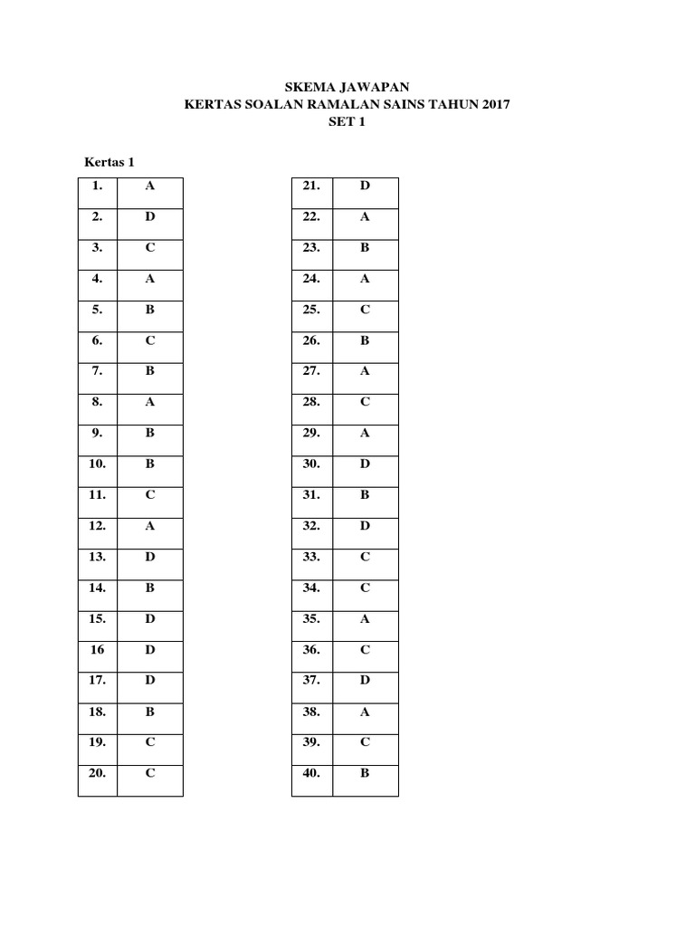 Kertas Ramalan 2017 Sains Set 1 Skema Jawapan