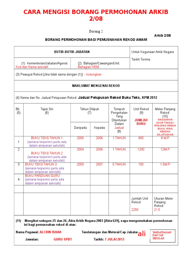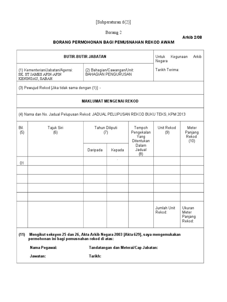 Tatacara Mengisi Borang Arkib 2 08 Dan Arkib 12 2 Doc