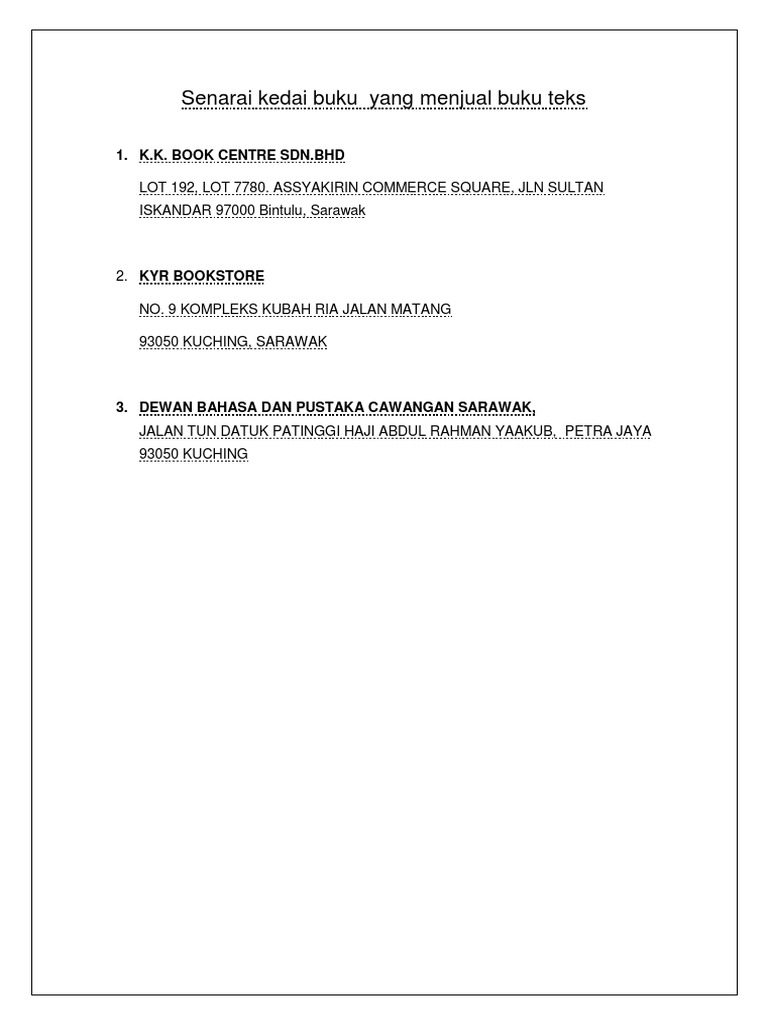 Senarai Kedai Buku Yang Menjual Buku Teks