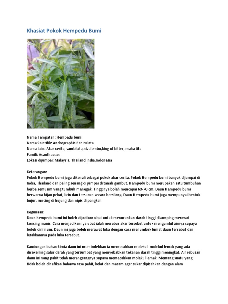 Khasiat Pokok Hempedu Bumi Petua Tips