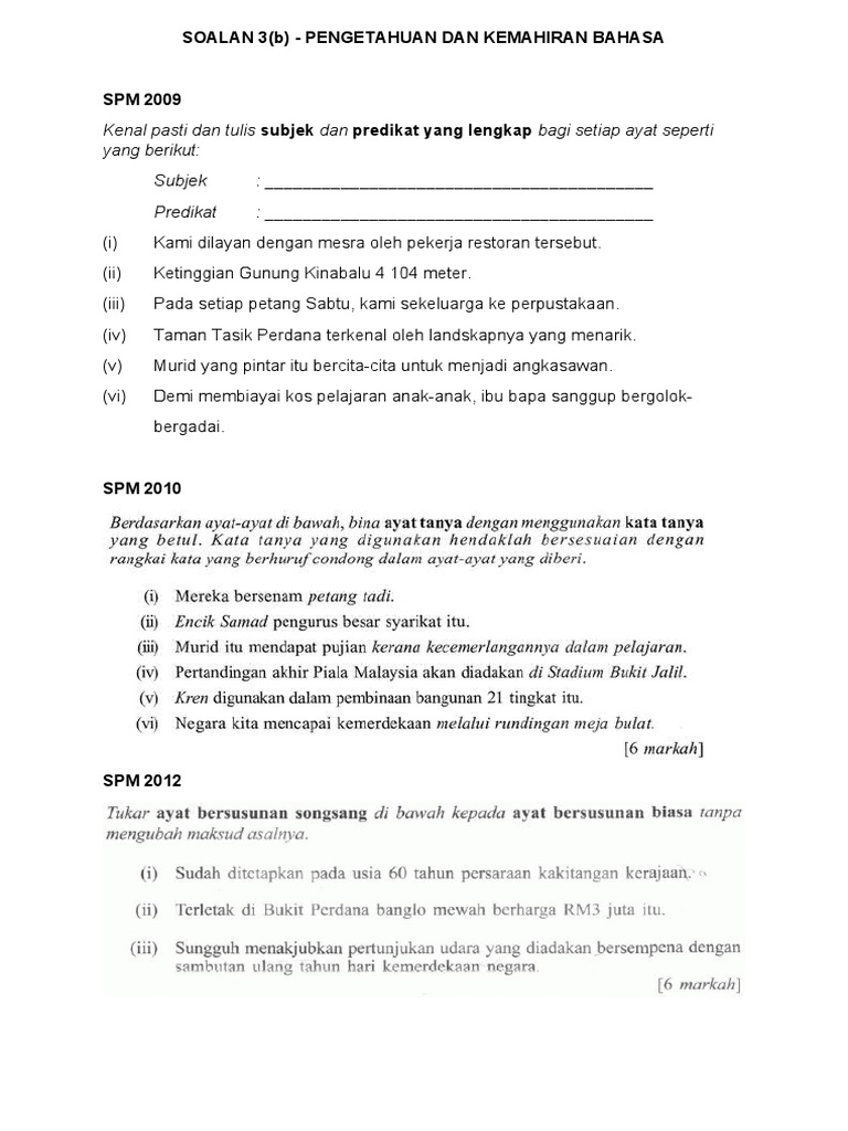 Latihan Subjek Dan Predikat Spm Dengan Jawapan