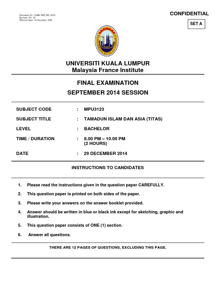 Tamadun Islam Dan Asia Confidential Document No Unikl Mfi Sd Ac41 Revision No 02 Effective Date 01 December 2008 Set A Universiti Kuala Lumpur Course Hero
