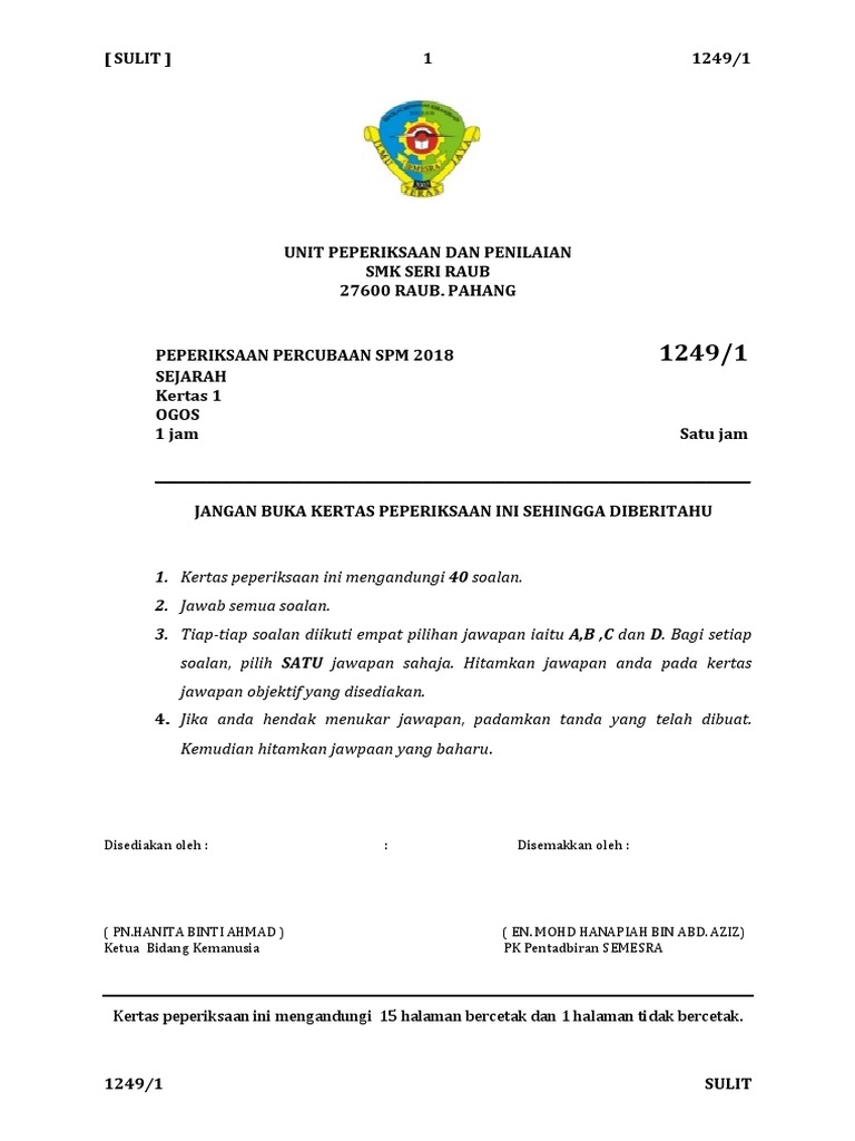 Download Soalan Peperiksaan Sejarah Percubaan Spm 2018 Pahang Pendidikanmalaysia Com