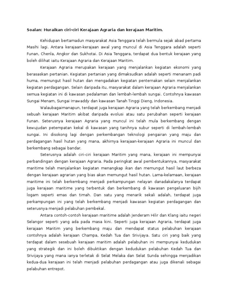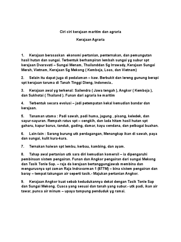 Ciri Ciri Kerajaan Maritim Dan Agraria