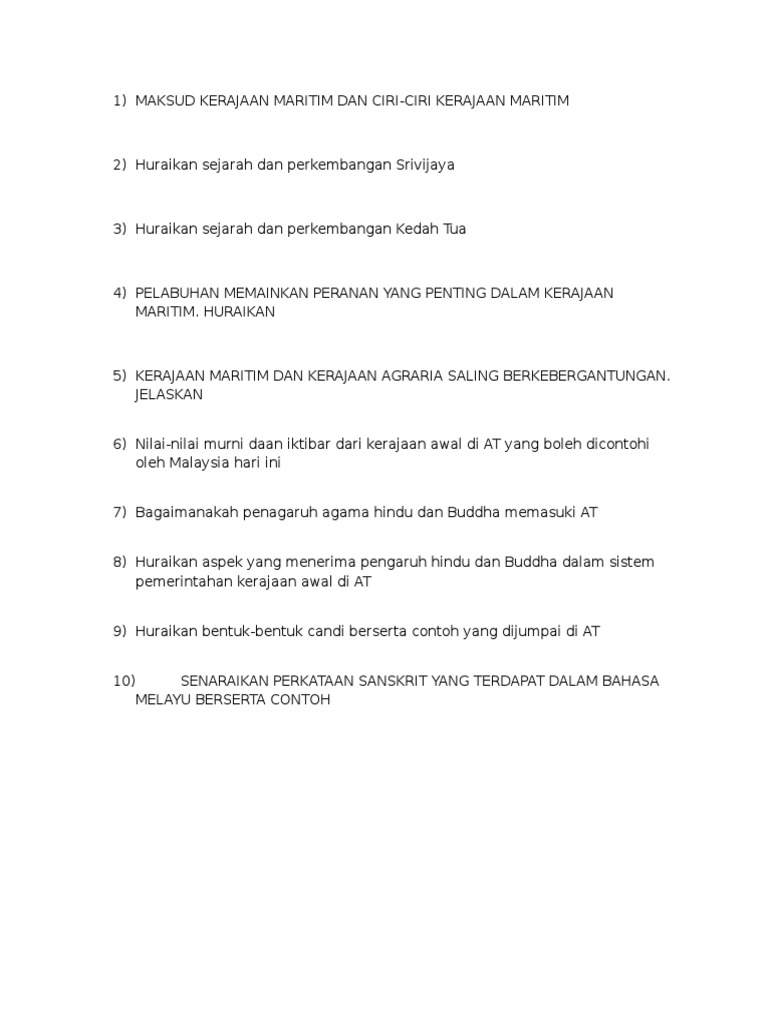 Skema Jawapan Jelaskan Ciri-ciri Kerajaan Maritim