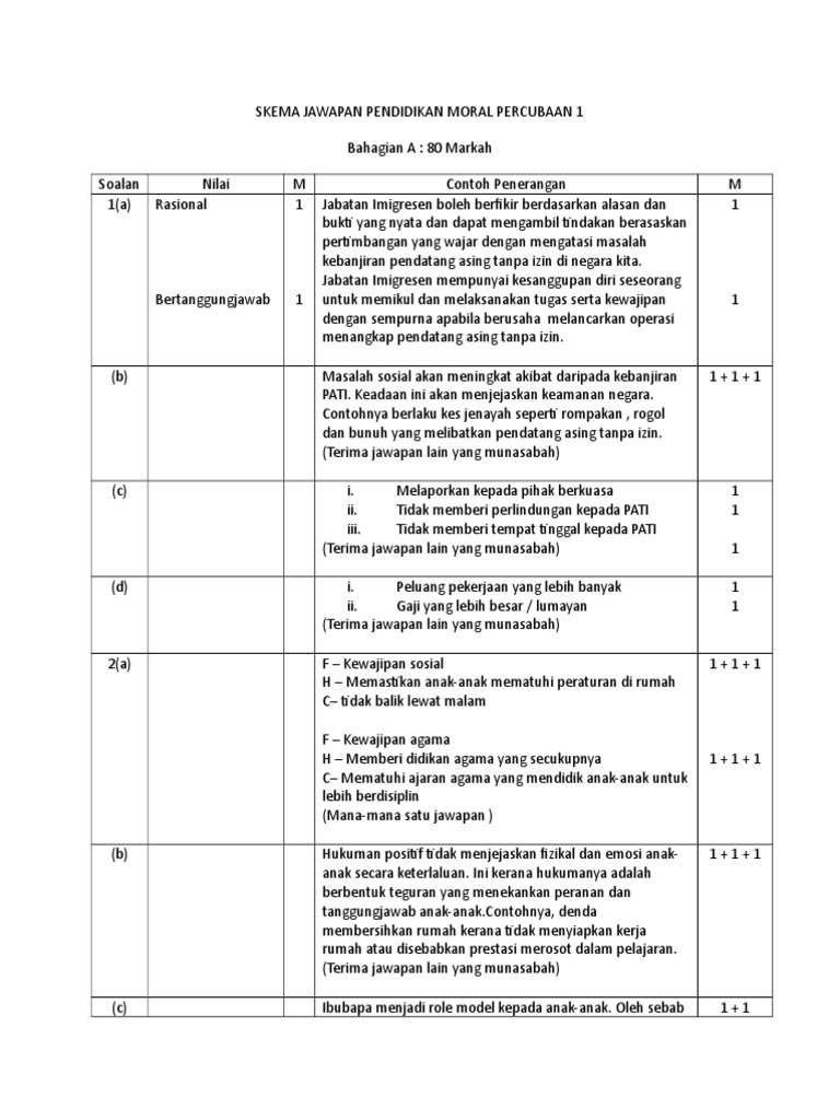 Skema Jawapan Pendidikan Moral Percubaan 1 2015