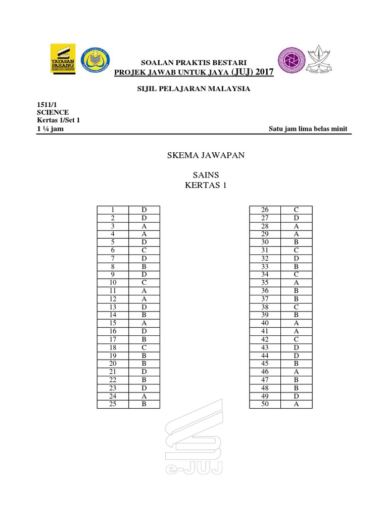 Skema Sains Kertas 1 Set 1 2017