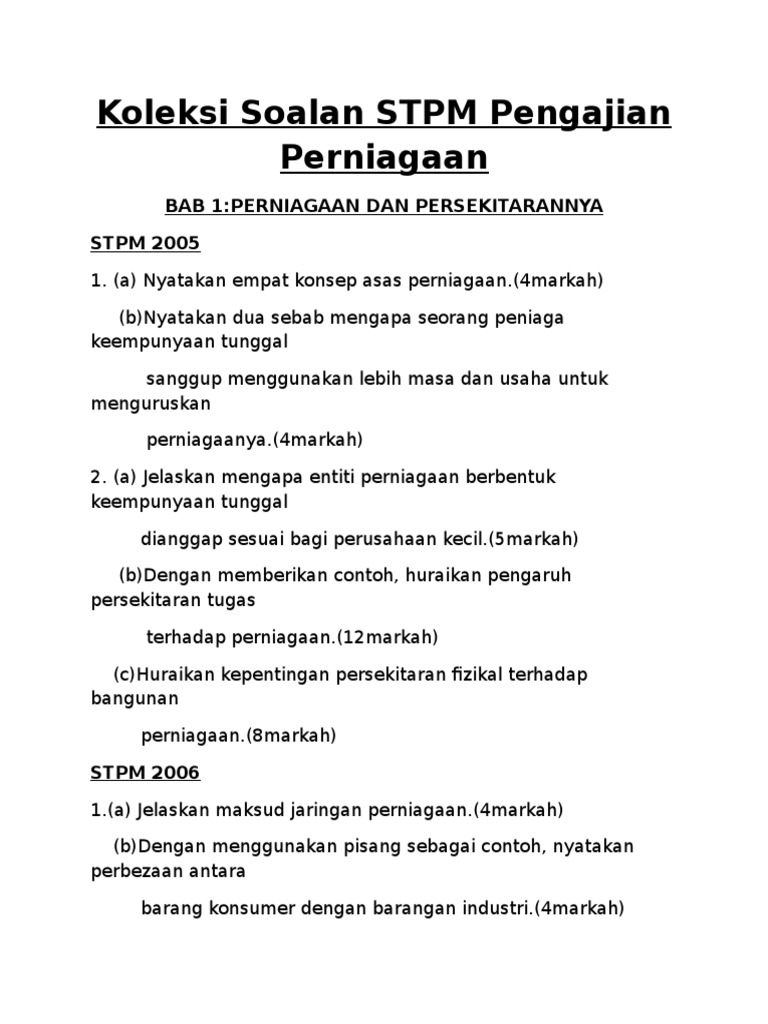 Koleksi Soalan Stpm Pengajian Perniagaan