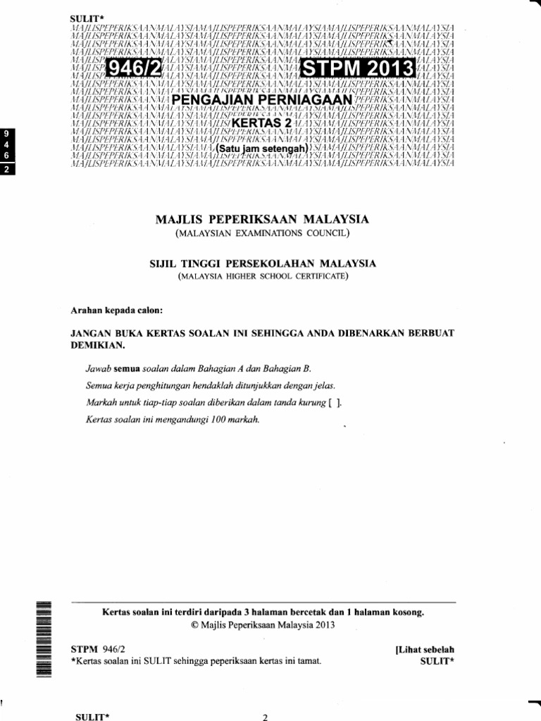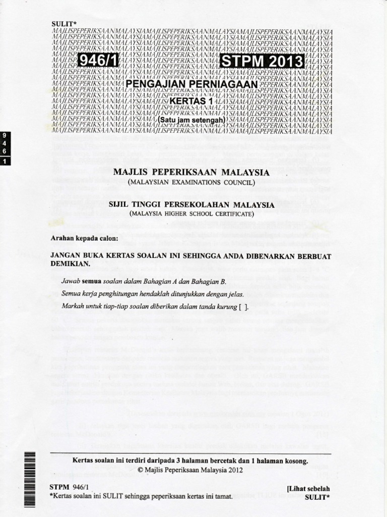 Kertas Soalan Peperiksaan Tahun Tahun Lepas Stpm Pengajian Perniagaan Semester 1 2 3