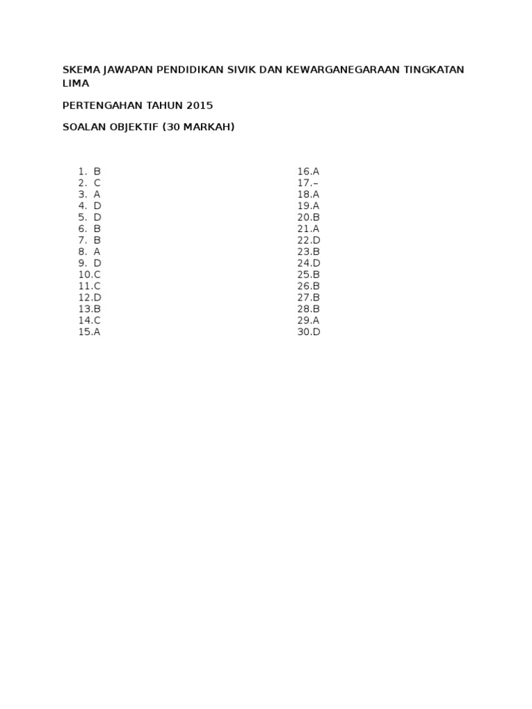 Skema Jawapan Pendidikan Sivik Dan Kewarganegaraan Tingkatan Lima