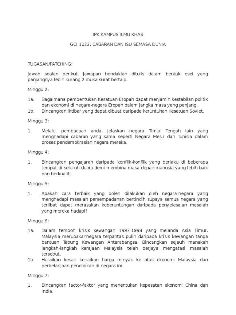 Gci 1022 Cabaran Isu Semasa Dunia Jawapan Soalan Berdasarkan Video Yang Telah Kami Tonton Justifikasi Yang Dapat Dibuat Ialah Video Tersebut Menunjukkan Studocu