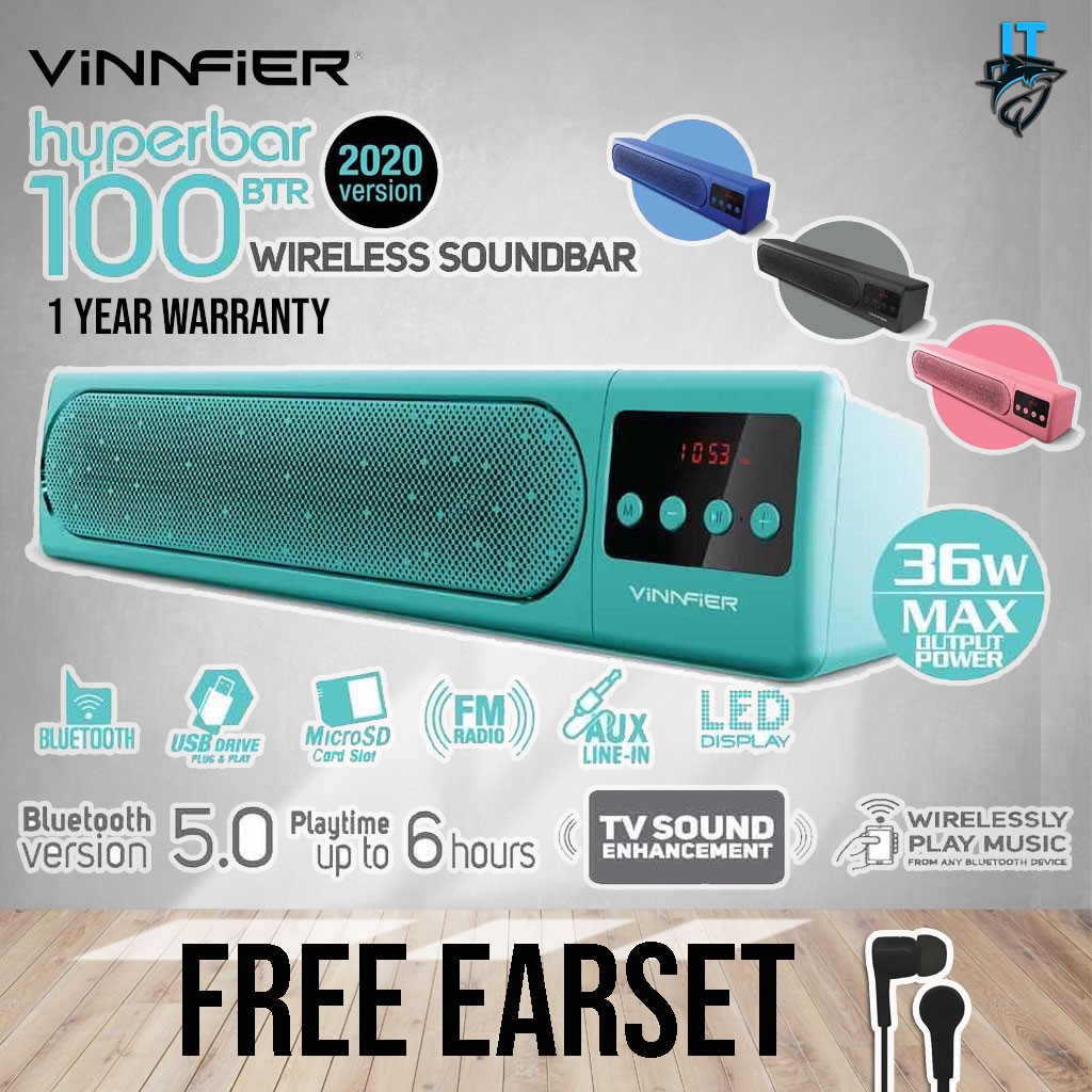 Ready Stock Vinnfier Hyperbar 100btr 2020 Wireless Bluetooth Portable Soundbar With Fmradio Usb Sd Card Aux Leddisplay Shopee Singapore