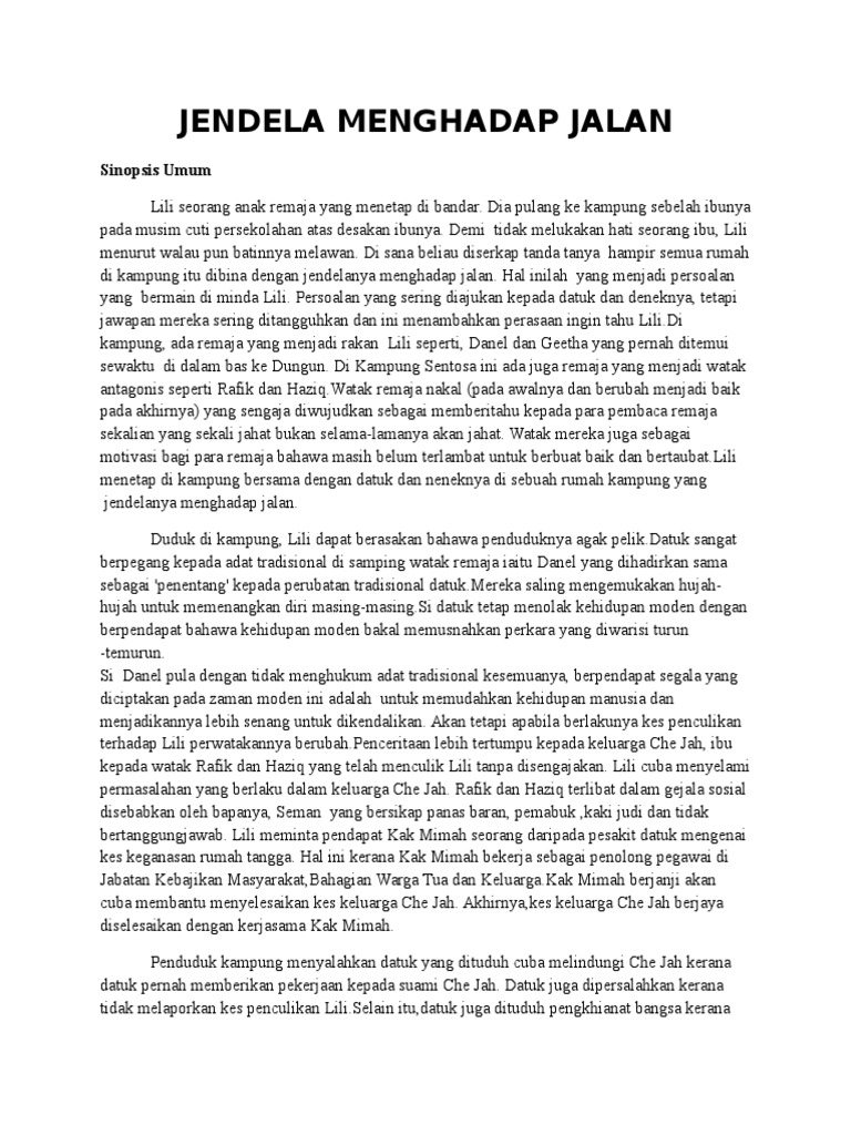 Novel Jendela Menghadap Jalan Sinopsis Keseluruhan