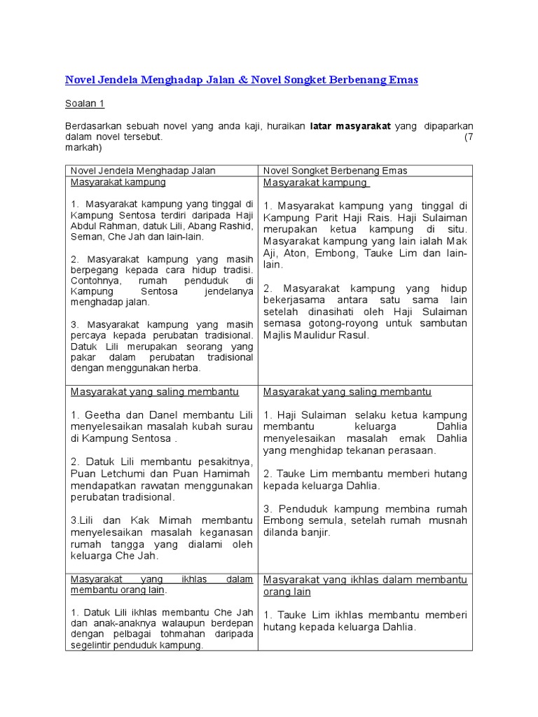 Soalan Dan Jawapan Novel Jendela Menghadap Jalan Top Sample Q