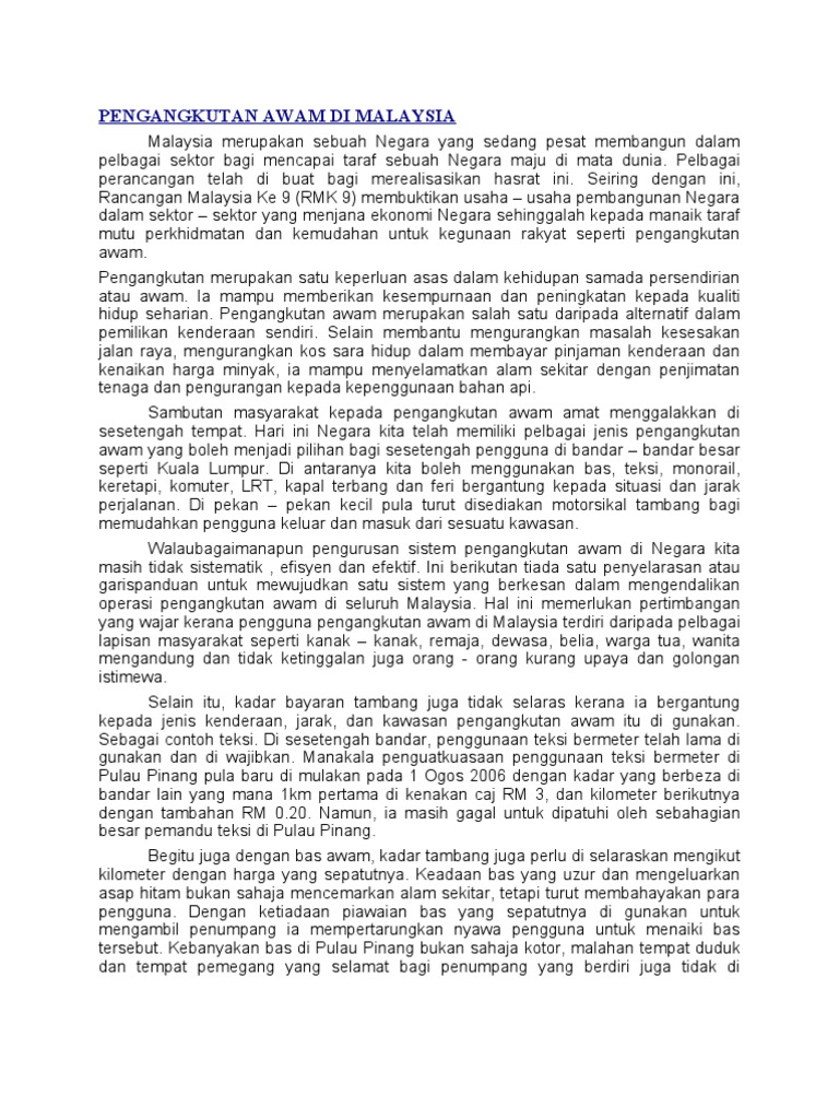 Contoh Karangan Kebaikan Menggunakan Pengangkutan Awam