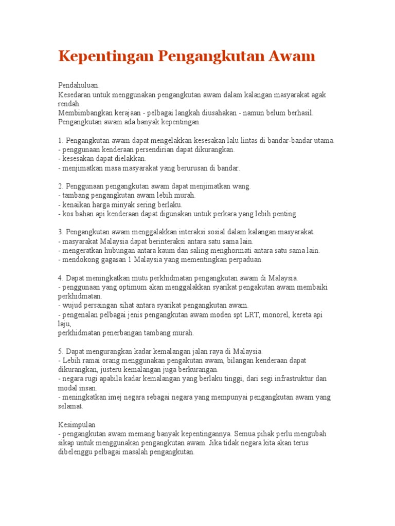 Karangan Kepentingan Pengangkutan Awam Kepada Masyarakat