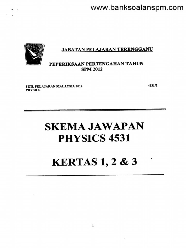 Skema Jawapan Fizik Terengganu 2012 Tingkatan 5