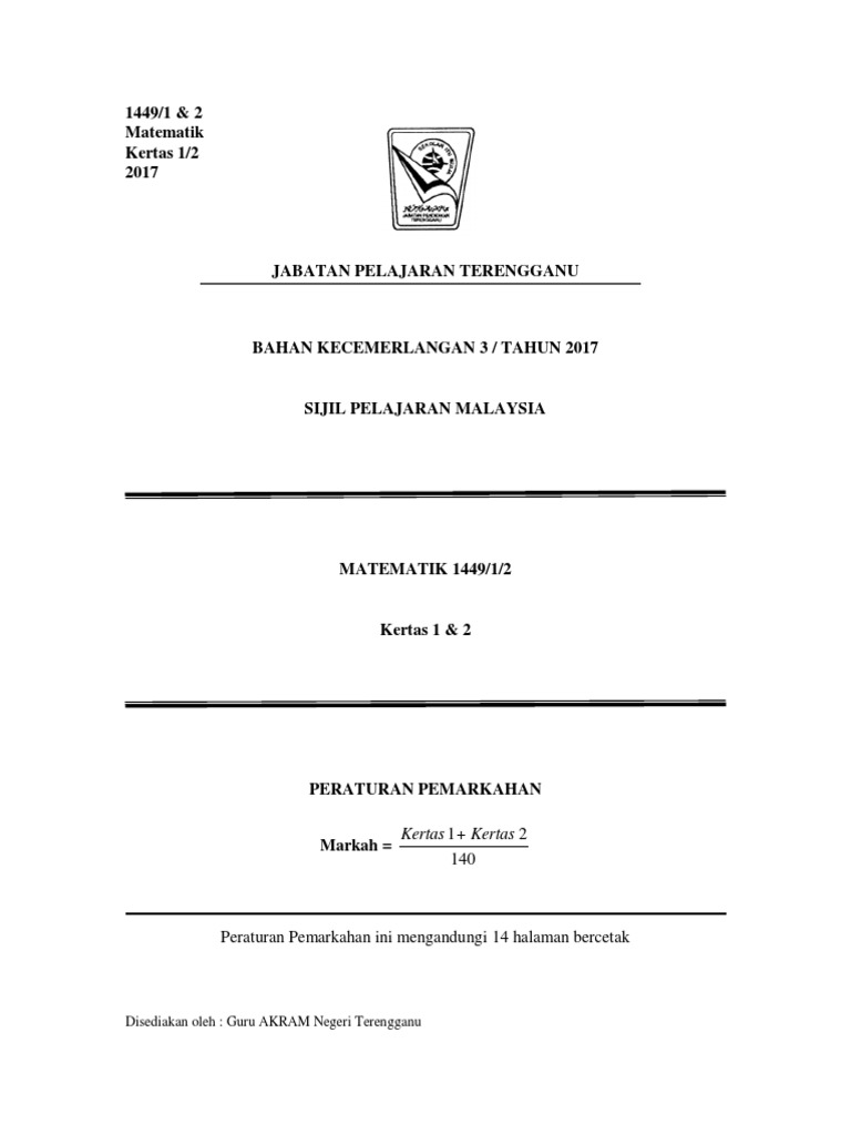 Koleksi Soalan Percubaan Spm Matematik 2017 Skema Jawapan Terengganu Pendidikanmalaysia Com